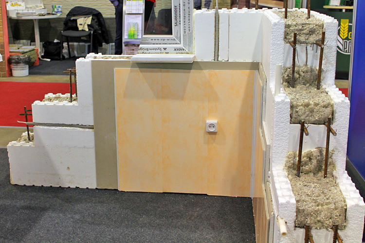 Предприятие выпускает блоки несъемной опалубки из пенополистирола, предназначенные для возведения стен. Они устанавливаются в шахматном порядке на фундамент, затем армируются и заливаются бетоном, образуя жесткую и мощную железобетонную конструкцию. Стена, выполненная по этой технологии, не требует дополнительного утепления. Внутренние перегородки можно изготовить из любых традиционных материалов и конструкций. Перекрытиями могут быть многопустотные, монолитные плиты или классические деревянные конструкции. Для наружной отделки стен подходит система мокрого типа, сайдинг или облицовочный кирпич. Внутреннюю отделку можно осуществить при помощи гипсокартонных плит. Принимая во внимание тот факт, что в последнее время цены на электроэнергию и топливо постоянно растут, вложения в энергосберегающие технологии становятся необходимыми. Стоимость блоков за 1 кв.м составляет 1100 руб.