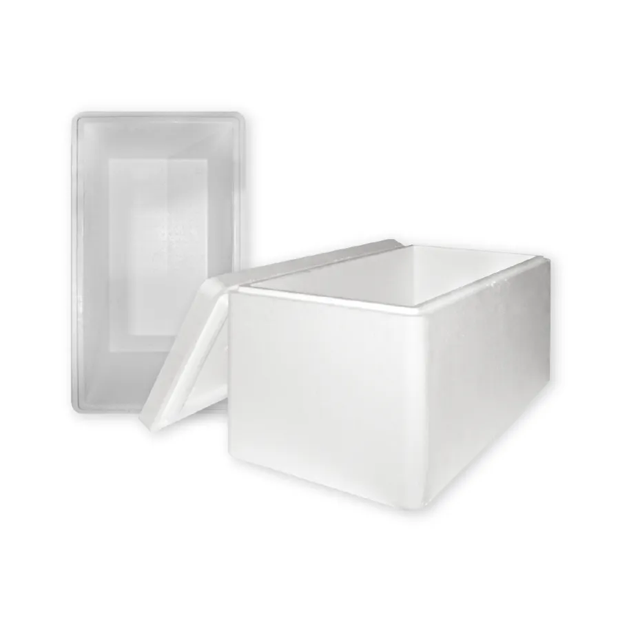 Термоконтейнер из пенополистирола плотностью 20 кг/м3 позволяет хранить и перевозить скоропортящиеся и замороженные продукты. Это хорошая альтернатива специализированным рефрижераторам, поскольку термоконтейнеры могут перевозиться с другими грузами на обычных транспортных средствах. Размеры: длина 472 мм, ширина 275 мм, высота 322 мм, внутренний объем 24 л.